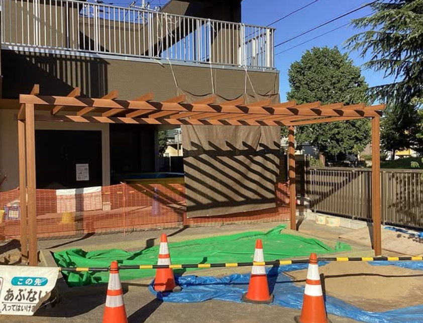 幼稚園砂場のパーゴラを設置